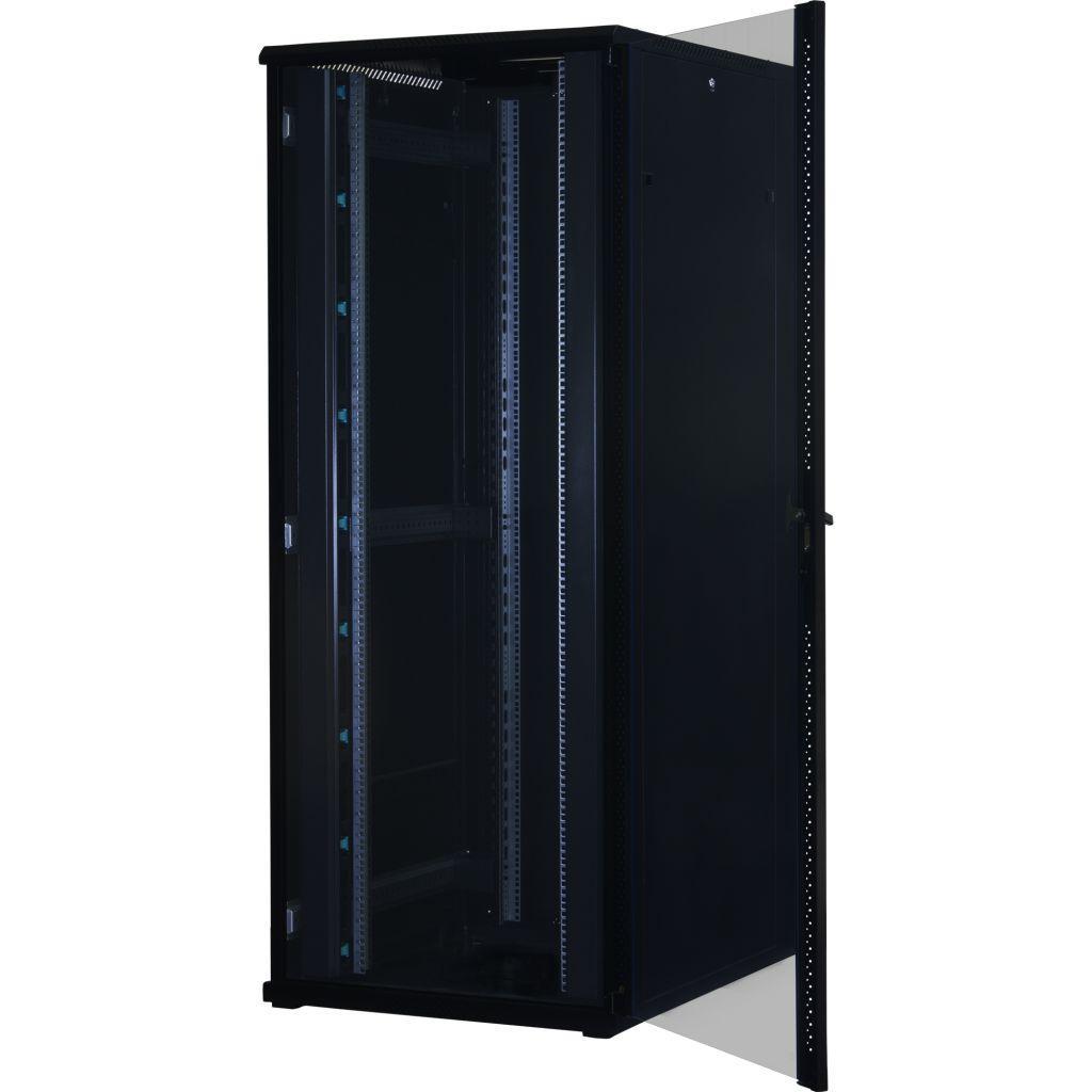 Einfacher Zugriff auf die eingebauten Komponenten auch von der Seite! Alle Rockstable Serverschränke werden mit einer Seitentür auf jeder Seite geliefert. Ein einfaches Klemmsystem hält die Tür in Position. Das Schloss sorgt für hohe Sicherheit.