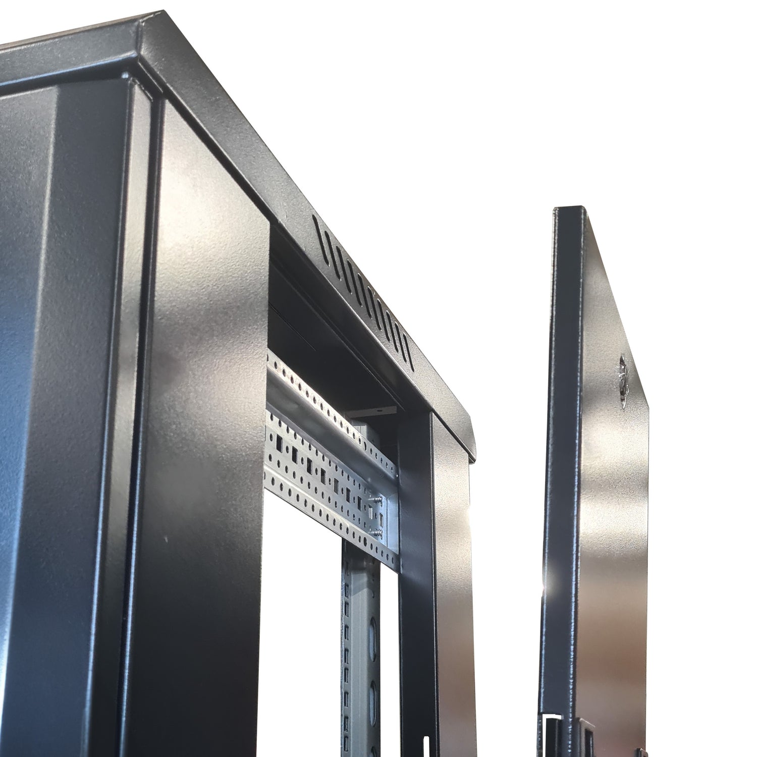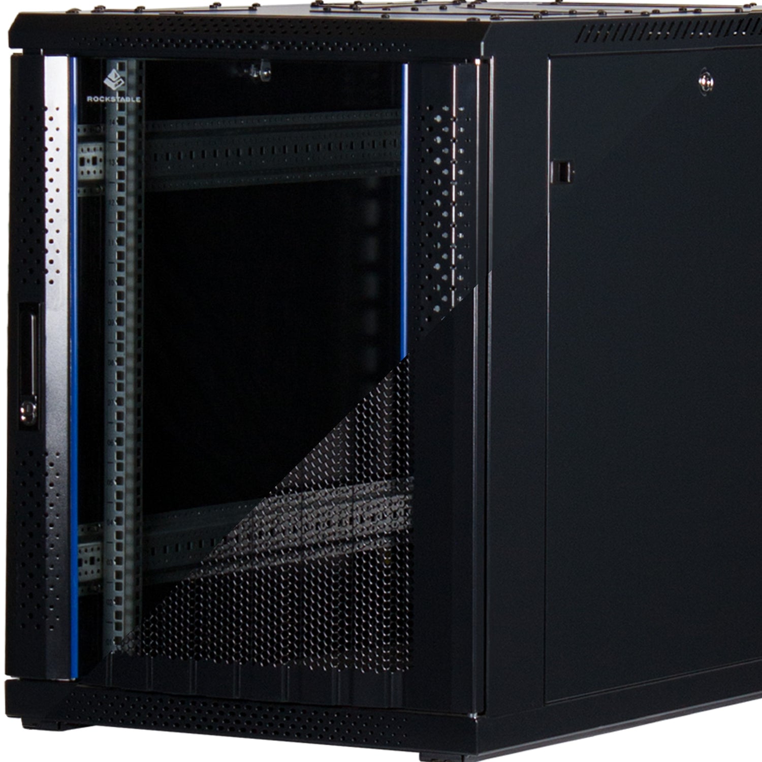 Einfacher Zugriff auf die eingebauten Komponenten auch von der Seite! Alle Rockstable Serverschränke werden mit einer Seitentür auf jeder Seite geliefert. Ein einfaches Klemmsystem hält die Tür in Position. Das Schloss sorgt für hohe Sicherheit.